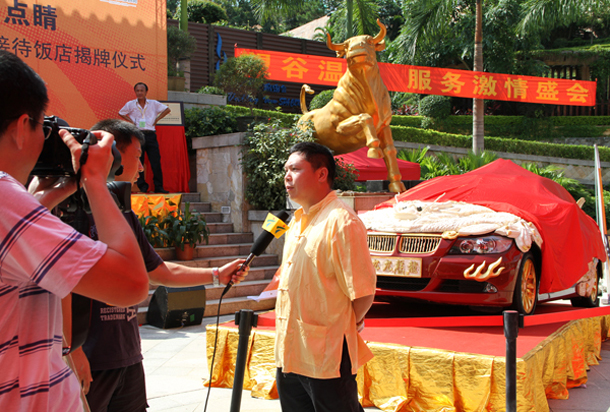 Yesterday, Mr. Zheng Chuhui, the president of the 16th Asian games reception hotel- Guangzhou Valley View Hot Spring Resort donated a South African diamond, helped o decorate the Auspicious Dragon, which was made by Micheal Sui group. Vice president of the Guangzhou CPPCC Ping Xinguang attended the event.